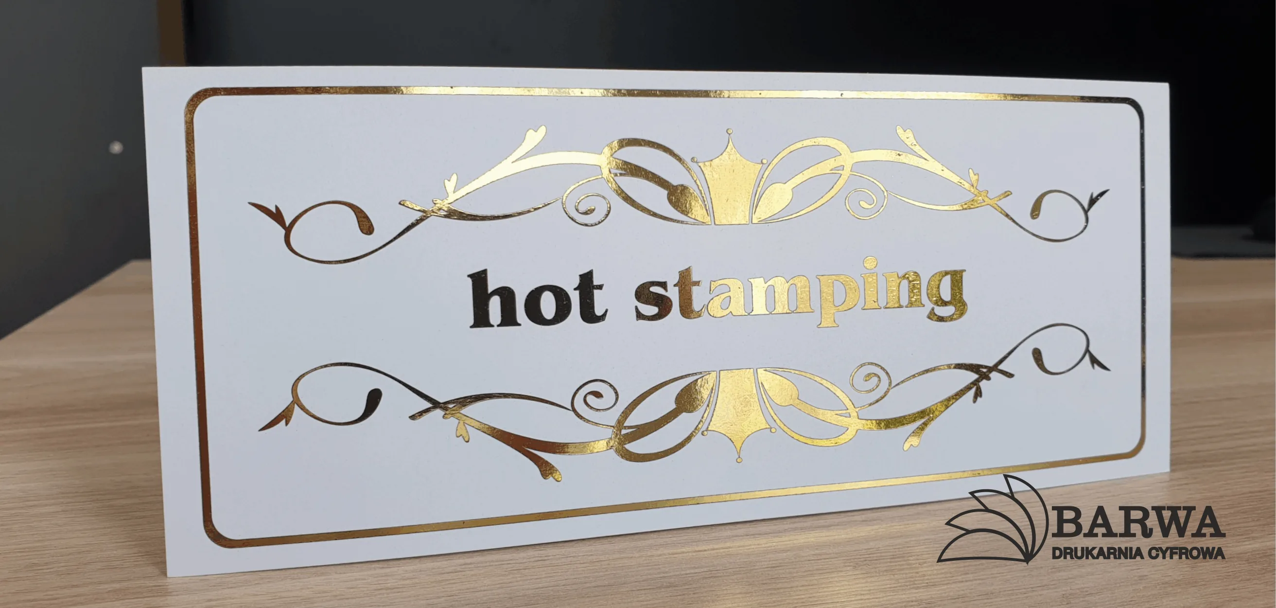 Od teraz możesz nadać swoim wydrukom niepowtarzalnego stylu. Wkomponuj w projekt złocone lub srebrne elementy, aby nadać im bardziej ekskluzywnego charakteru. Cyfrowy hot stamping daje możliwość uzyskania metalicznych bądź holograficznych efektów na wydrukach. Nie ma tu kosztownych matryc, więc jest to idealna metoda dla niewielkich nakładów oraz prac personalizowanych (np. zaproszenia czy winietki na stoły). Złocenie najlepiej prezentuje się na wydrukach laminowanych folią ultramatową oraz na kartonach barwionych w masie (czarnym, granatowym czy bordo).