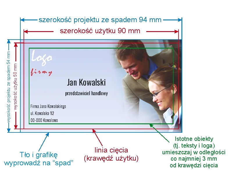 - margines dla treści min. 3 mm od linii cięcia