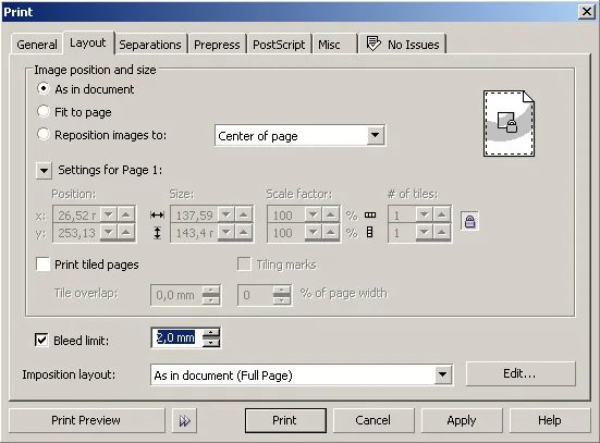 W zakładce "Layout" należy pamiętać o ustawieniu spadu 2mm.