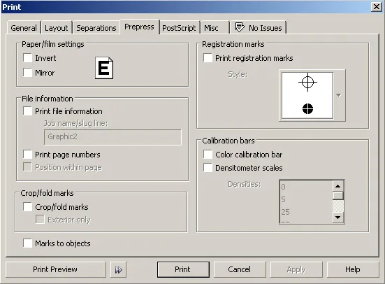 W zakładce "Prepress" nie zaznaczamy żadnych znaczników