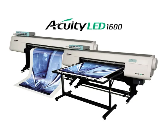 Urządzenie Fuji Acuity LED 1600 wyposażone w unikalny system utrwalania UV LED o niskim zużyciu energii, posiadające wydajność 20 metrów kwadratowych na godzinę. Urządzenie może drukować na podłożach sztywnych i elastycznych (m.in. PET, akryl, poliwęglan) i nadaje się do szeregu zastosowań, w tym do druku plakatów, reklamy typu POP i display. Dodatkowym atutem jest utrwalanie LED czyli światłem zimnym bez nagrzewania materiału, dzięki temu można drukować np. na folii termokurczliwej lub celofanie.